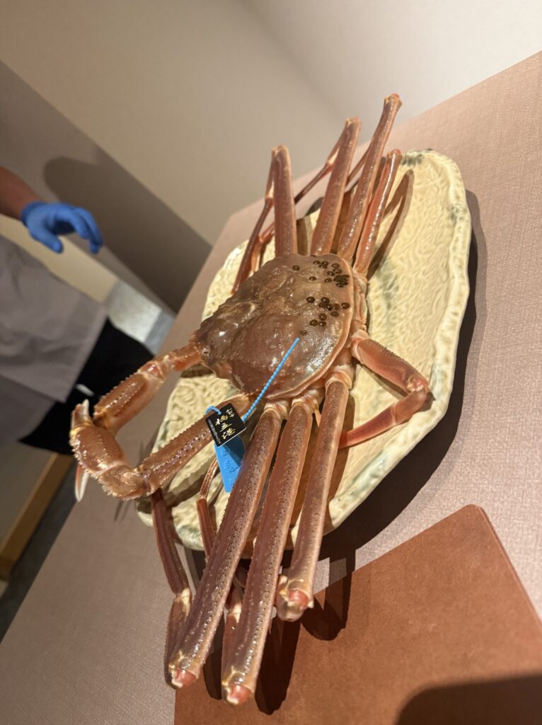 今回は別途、食事代(1人6,000円弱)に加えて、冬の味覚の王様**「加納蟹(カニ)」**を注文しました。